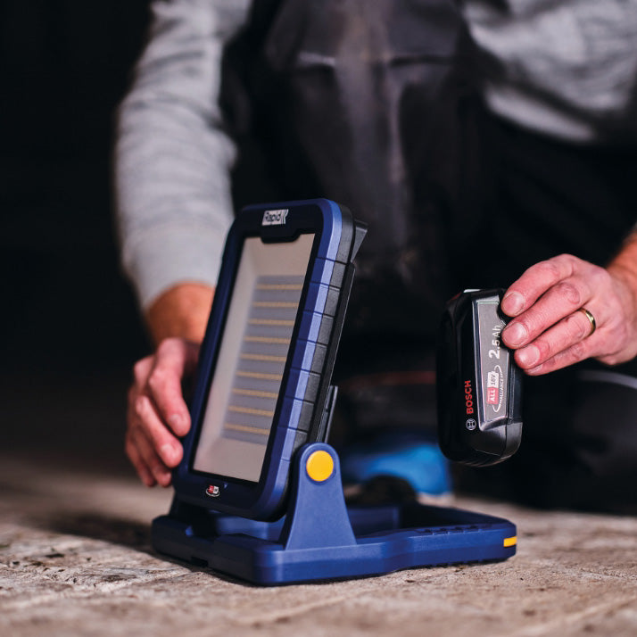 Rapid BWL2400 är en pålitlig och mångsidig arbetslampa som levererar kraftfull belysning där du behöver det. Med en ljusstyrka på 2400 lumen och två anpassade ljuslägen ger den både intensivt arbetsljus för detaljerat arbete och ett behagligt allmänljus när du behöver en mer dämpad belysning. Lampan är sladdlös och drivs av ett 18V-batteri, vilket ger dig friheten att arbeta var du vill – i garaget, skjulet, på vinden eller andra platser där det saknas eluttag. Dessutom kan lampan vinklas i 180°, vilket gör det enkelt att rikta ljuset exakt där det behövs. Arbetslampan är enkel att ställa eller hänga i dess krok eller handtag. Den är också smidig att flytta runt genom sin låga vikt, kompakta design och handtaget på baksidan. Rapid BWL2400 tar liten plats vid förvaring och är förberedd för att användas på stativ (ingår ej). Rapid BWL2400 ingår i Boschs batterisamarbete POWER FOR ALL ALLIANCE. Därför kan du använda samma batteri till Rapids 18V-produkter såväl som en mängd produkter från varumärken såsom Bosch, Gardena, Husqvarna och Wagner. Vi rekommenderar 2,5 Ah batteriet, vilket ger upp till 3 timmars arbetstid. Batteri och laddare ingår ej utan säljs separat.