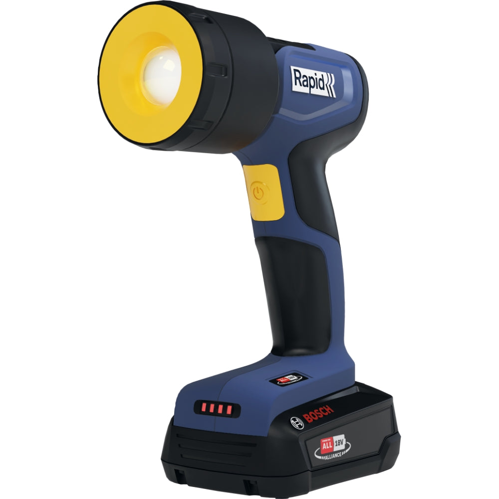 Den batteridrivna arbetslampan Rapid BWL290 fungerar genom sin design och funktion lika bra som arbetslampa, inspektionslampa eller pålitlig ficklampa. En smidig lampa när du behöver koppla en slang under diskbänken eller behöver en rejäl ficklampa att lita på i båten, bilen eller på vinden. Med ett enkelt vrid på ljushuvudet justerar du ljusbilden från ett brett allmänljus till en fokuserad stråle med en räckvidd på upp till 80 meter. Lampan har två ljusstyrkor – 290 lumen i 100 % läge för kraftfull belysning och 50 % läge när du behöver mjukare ljus. För extra smidig användning har Rapid BWL290 ett 90⁰-vinklingsbart huvud med 7 fasta lägen. Det betyder att du kan ställa arbetslampan stadigt och sedan rikta arbetsljuset där du vill ha det. Rapid BWL290 har även en praktisk upphängningsögla och en LED-indikator som visar batteriets laddningsstatus. Rapid BWL290 ingår i Boschs batterisamarbete POWER FOR ALL ALLIANCE. Därför kan du använda samma batteri till Rapids 18V-produkter såväl som en mängd produkter från varumärken såsom Bosch, Gardena, Husqvarna och Wagner. Vi rekommenderar 2,5 Ah batteriet, vilket ger upp till 14 timmars arbetstid. Batteri och laddare ingår ej utan säljs separat.