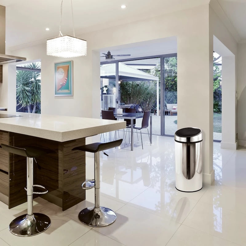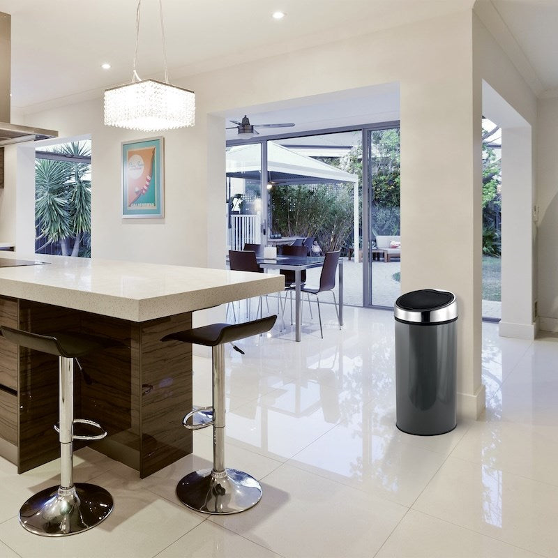 Den återvunna innerhinken i plast med handtag gör det enkelt att tömma och rengöra kärlet. Touch-systemet gör att du enkelt kan öppna locket utan oväsen tack vare en inbyggd stötdämpare. Locket sluter tätt så dålig lukt stannar kvar i tunnan. Enkel att hålla ren.