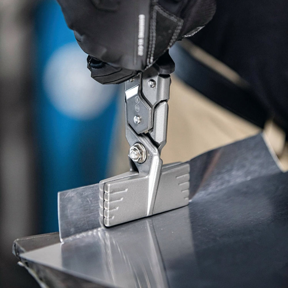 Metalllåset säkrar verktyget för förvaring och manövreras enkelt med en hand. Klarar 22-Gauge stål och 24-Gauge rostfritt stål. Ögla i handtaget för verktygssäkring. Tillverkad av kvalitetsmaterial och byggd för att hålla länge i de tuffaste miljöerna. ToughBuilt produkter är designade, konstruerade, testade och inspekterade i USA för att säkerställa optimal hög kvalitet. Totallängd 250 mm. SB-packad.