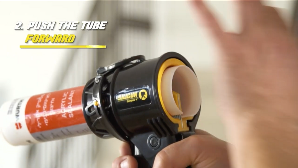 Den saknar tryckstång och kommer därför åt i trånga utrymmen. Sprutan har 3M-mekanism med rakblad för att öppna patroner och kan användas för silikon, latex, akryl och lim.