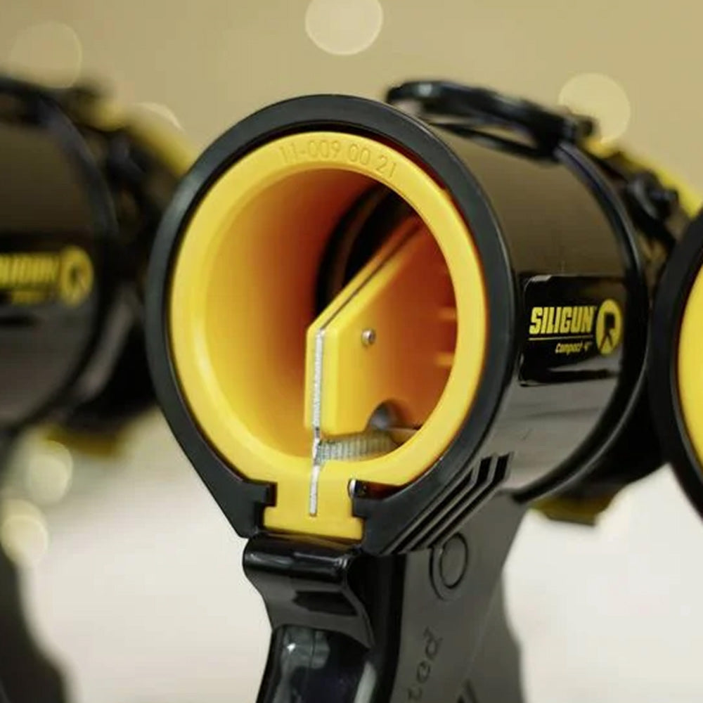Siligun är en ultrakompakt och lätt fogspruta (295 g, 10 × 18 cm) i stark ABS-plast utan tryckstång, vilket gör att du enkelt kommer åt även i trånga utrymmen.