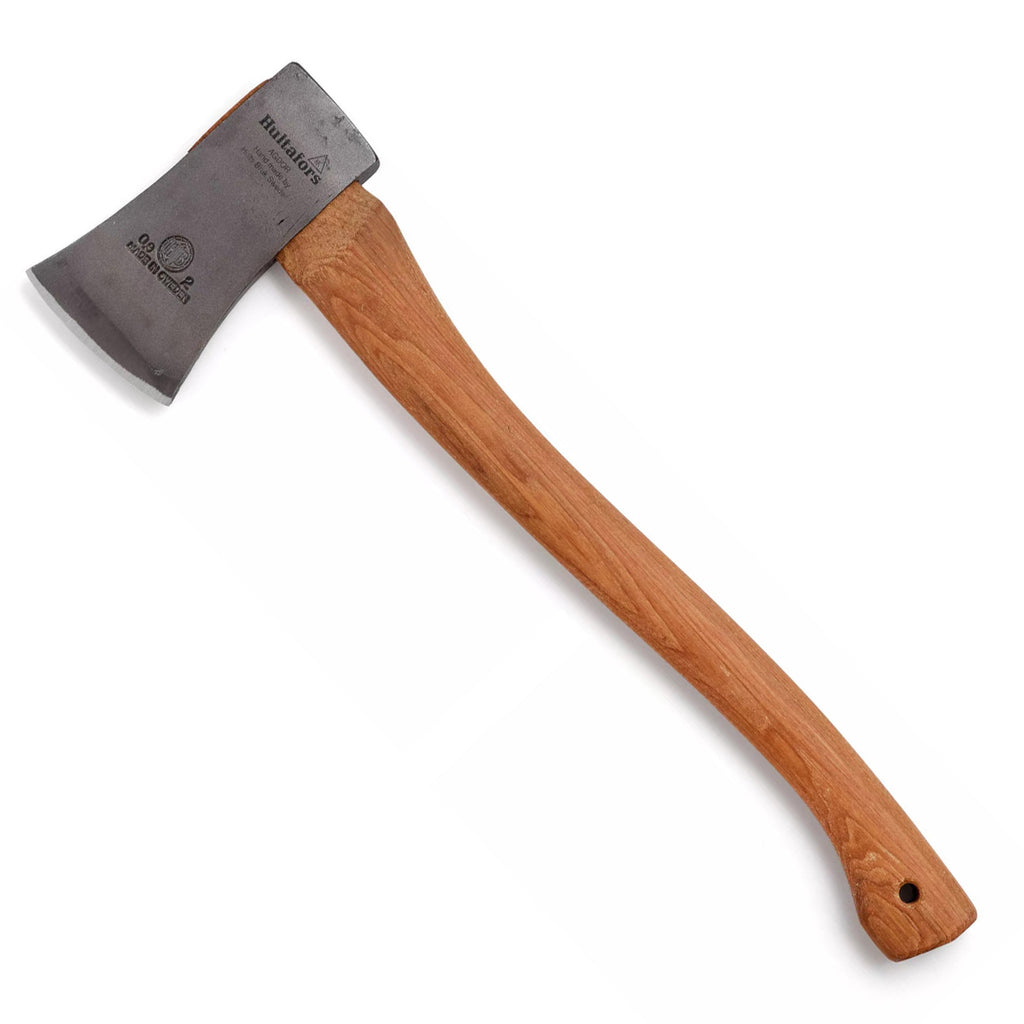 Blästrat och klarlackat smide. En mindre yxa för friluftsliv i skog och mark. Är även lämplig till arbetet i trädgården. Svängt skaft av hickory.