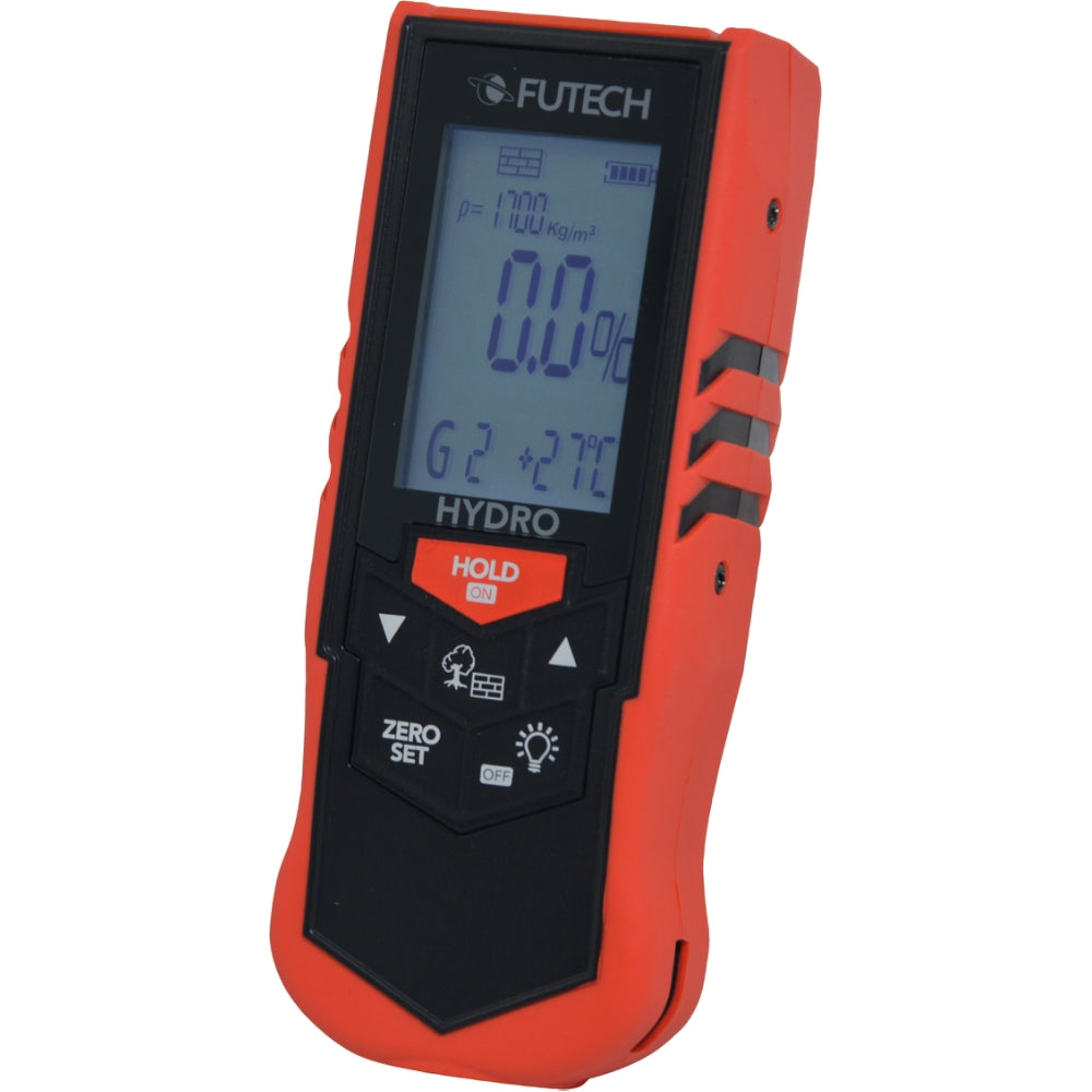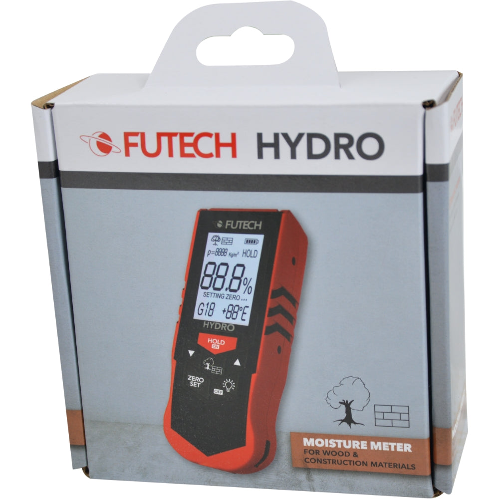 Mäter fuktighalten i procent med hjälp av ultraljudsvågor som når längre ner i materialet med hög tillförlitlighet. SB-packad.