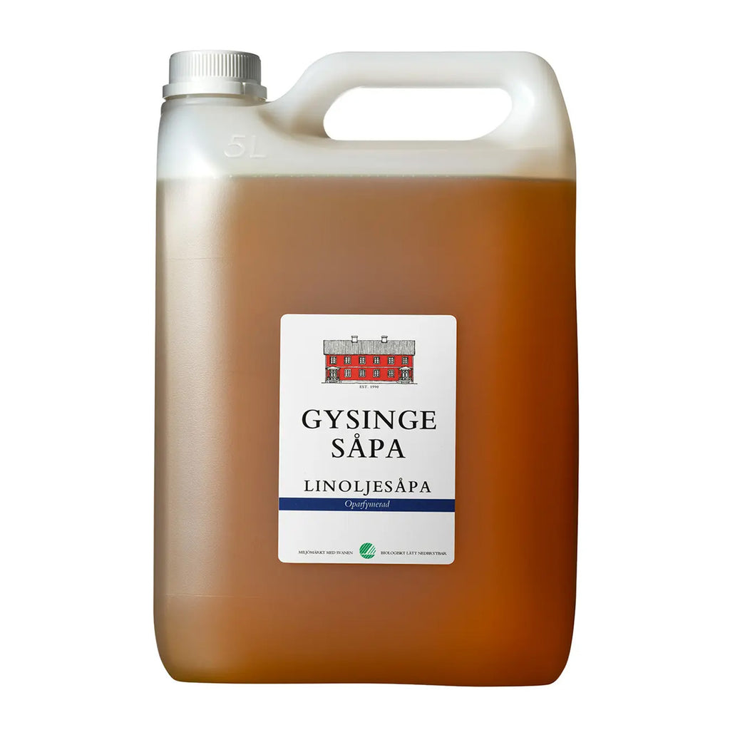 En linoljesåpa med oslagbar rengöringsförmåga, tillverkad av linolja av högsta kvalitet. Gysingesåpa linoljesåpa är fet, dryg och fri från konserveringsmedel. Biologiskt lätt nedbrytbar och märkt med Svanens nordiska miljömärkning.