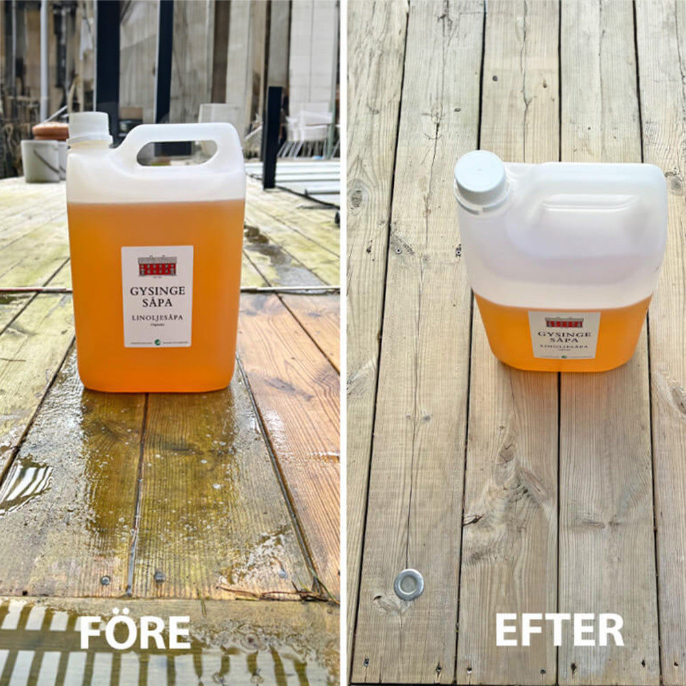 - Rengör, återfettar och skyddar trä- och stenytor.