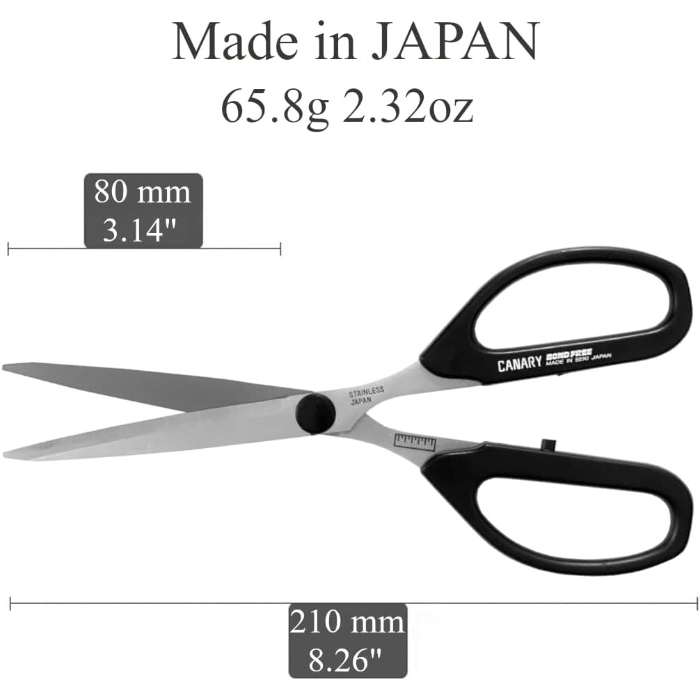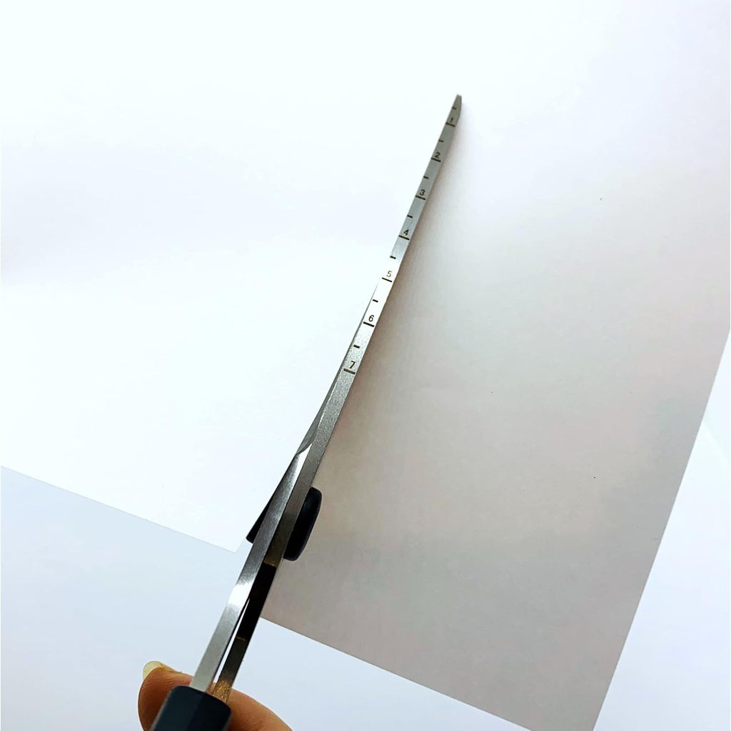 Bladens rygg är försedd med en tydlig mätskala i millimeter, vilket gör saxen särskilt praktisk vid hantverksarbeten som kräver noggrann längdmätning direkt under klippet. Canarys unika Bond Free-beläggning med tetrafluorid gör dessutom bladen extra tåliga och helt non-stick, så att tejp och lim inte fastnar.