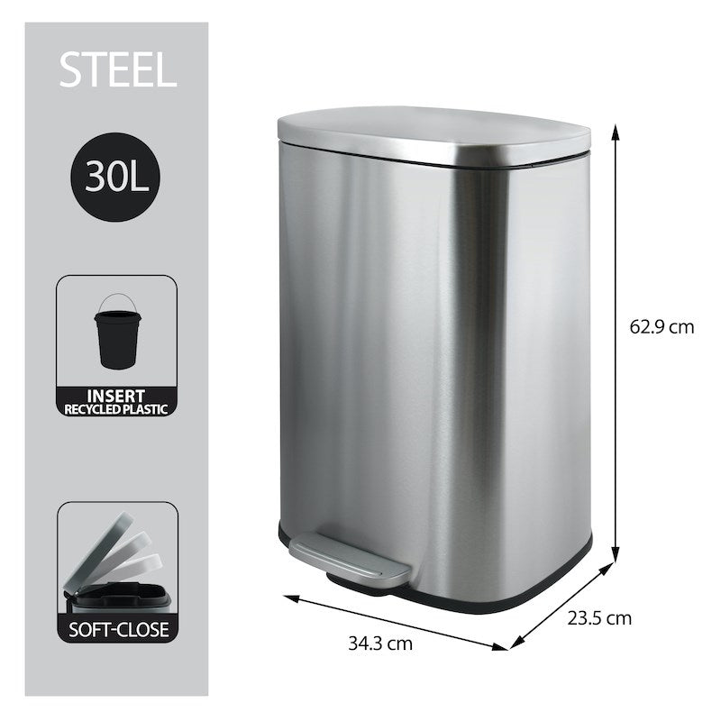 Rymlig pedalhink med soft-close - Pedalhink i metall med mjukstängande lock och löstagbar innerhink. 30 liter som passar utmärkt för kök eller större utrymmen. Läs mer...
