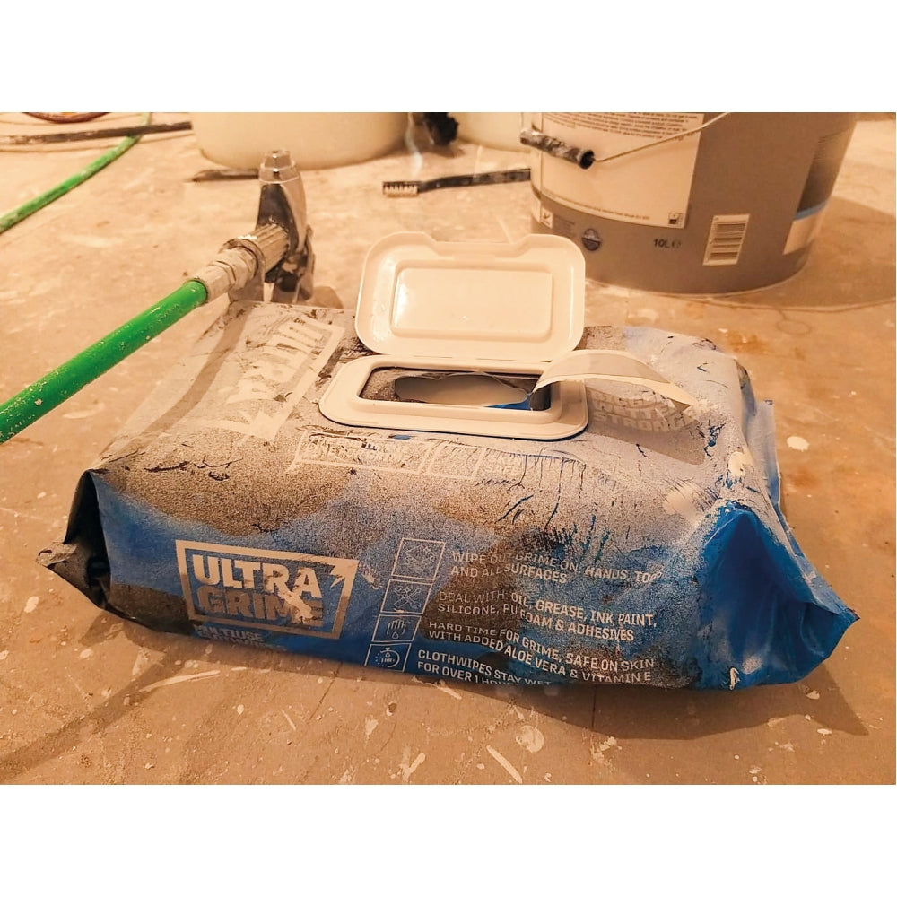 UltraGrime Pro Multiuse XXL är en skonsam men kraftfull rengöringsduk som snabbt och effektivt tar bort smuts, fett, olja, färg, lim, silikon och mycket mer – helt utan vatten. Perfekt för både händer, verktyg och ytor.