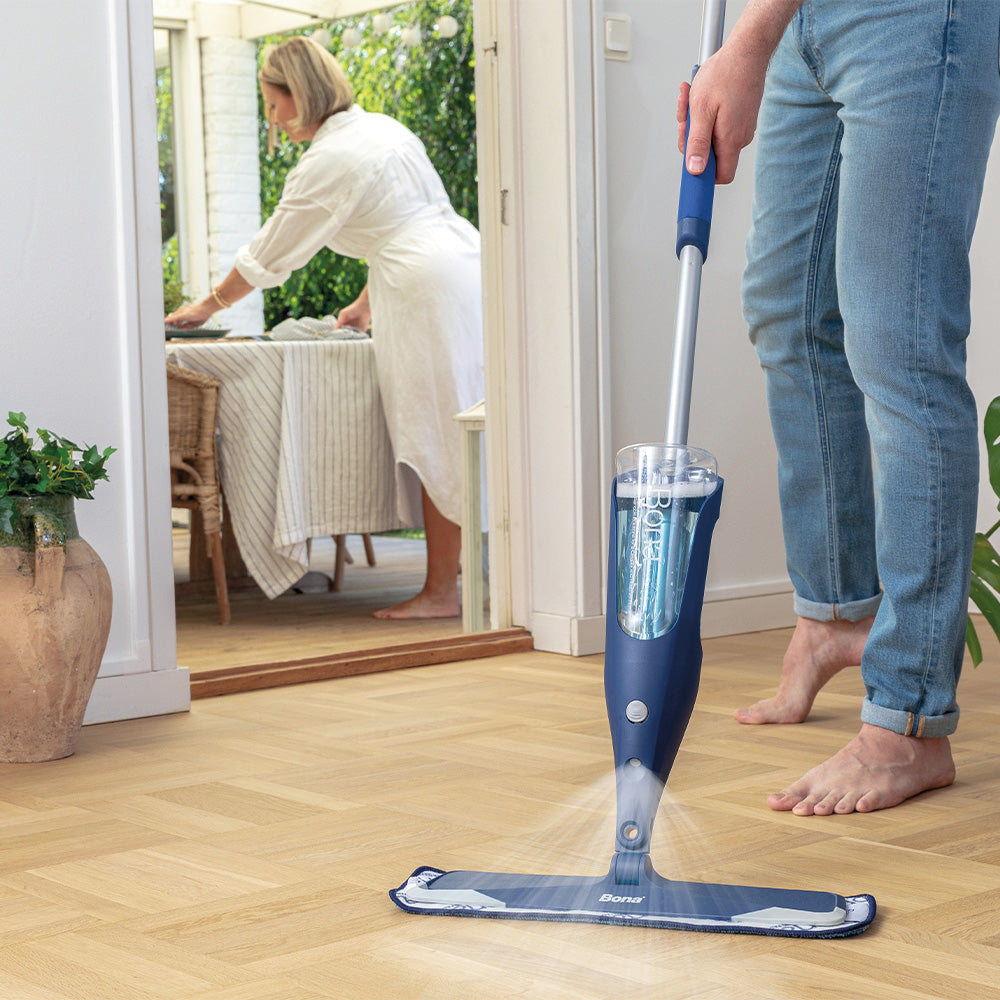 Spraymopp av hög kvalitet som rengör dina lackerade och hårdvaxoljade trägolv med ett pH-neutralt, snabbtorkande och effektivt rengöringsmedel som inte lämnar några ränder eller rester efter sig. Glöm hink och vatten - bara spraya och torka för snabb och effektiv rengöring.