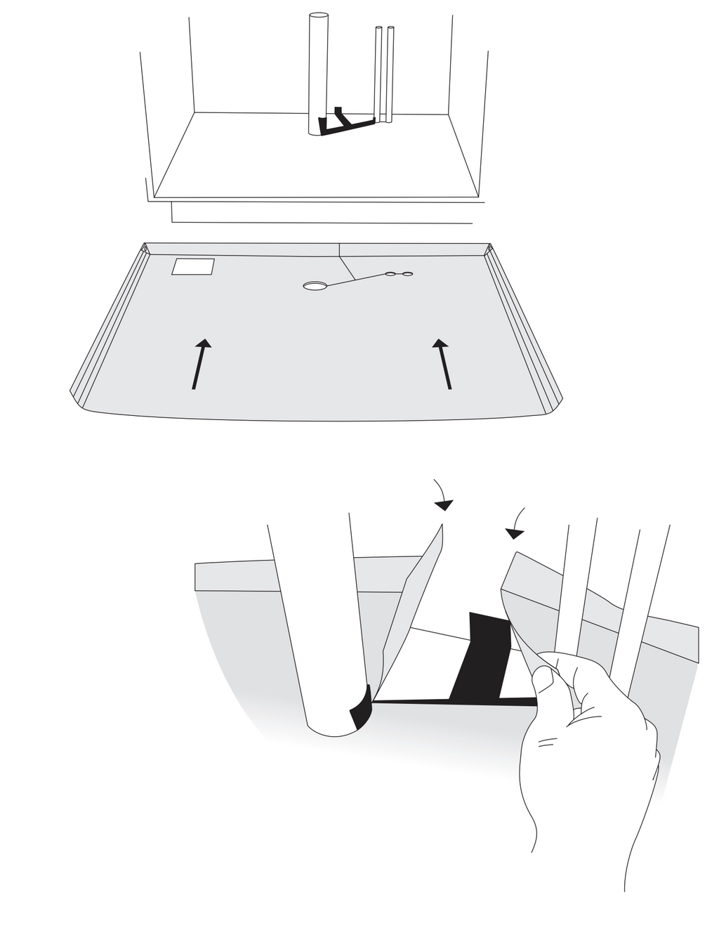 - Det svarta tätningsbandet är dubbelhäftande, med det tätar du skarvar mellan två material, exempelvis skåpbotten och ett underlägg ur B-serien.