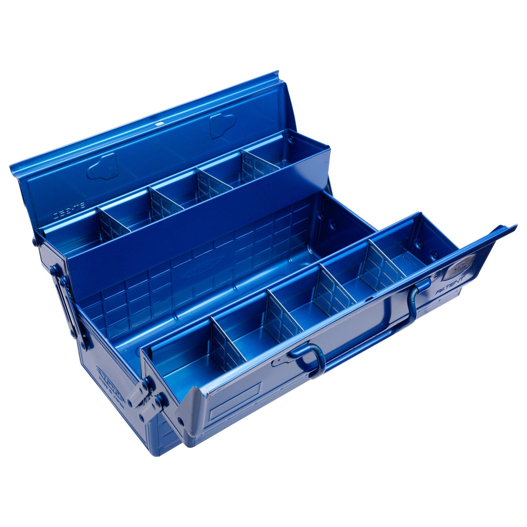 Snygg och praktisk förvaring för verktyg, redskap eller precis vad som helst. Japanskt hantverk och design möts i en ”vill ha”-produkt. ST-350 är en klassisk modell i två våningar. Ett stort nedre fack och två mindre längst upp. De övre våningsplanen kan delas i upp till 5 små fack per sida. Gör den till en välordnad verktygslåda, fiskelåda, sylåda, målarlåda eller legolåda.