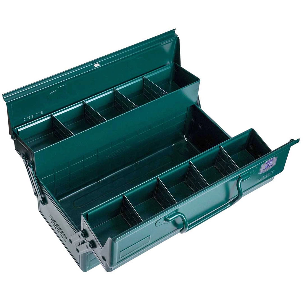 Snygg och praktisk förvaring för verktyg, redskap eller precis vad som helst. Japanskt hantverk och design möts i en ”vill ha”-produkt. ST-350 är en klassisk modell i två våningar. Ett stort nedre fack och två mindre längst upp. De övre våningsplanen kan delas i upp till 5 små fack per sida. Gör den till en välordnad verktygslåda, fiskelåda, sylåda, målarlåda eller legolåda.