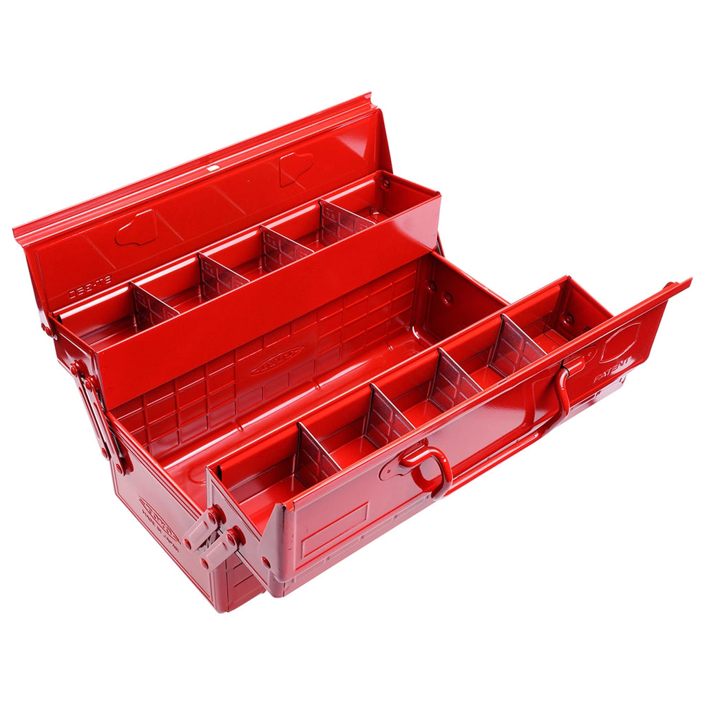 Snygg och praktisk förvaring för verktyg, redskap eller precis vad som helst. Japanskt hantverk och design möts i en ”vill ha”-produkt. ST-350 är en klassisk modell i två våningar. Ett stort nedre fack och två mindre längst upp. De övre våningsplanen kan delas i upp till 5 små fack per sida. Gör den till en välordnad verktygslåda, fiskelåda, sylåda, målarlåda eller legolåda.