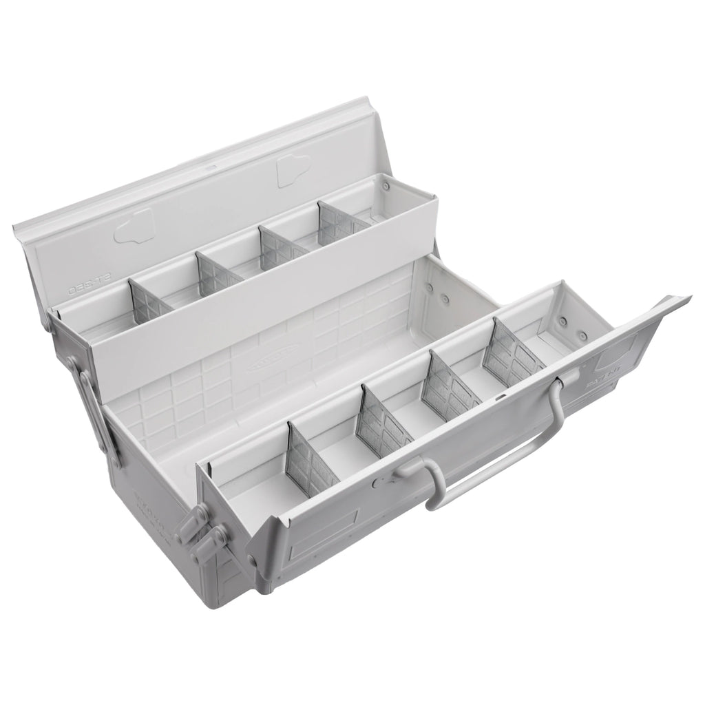 Snygg och praktisk förvaring för verktyg, redskap eller precis vad som helst. Japanskt hantverk och design möts i en ”vill ha”-produkt. ST-350 är en klassisk modell i två våningar. Ett stort nedre fack och två mindre längst upp. De övre våningsplanen kan delas i upp till 5 små fack per sida. Gör den till en välordnad verktygslåda, fiskelåda, sylåda, målarlåda eller legolåda.
